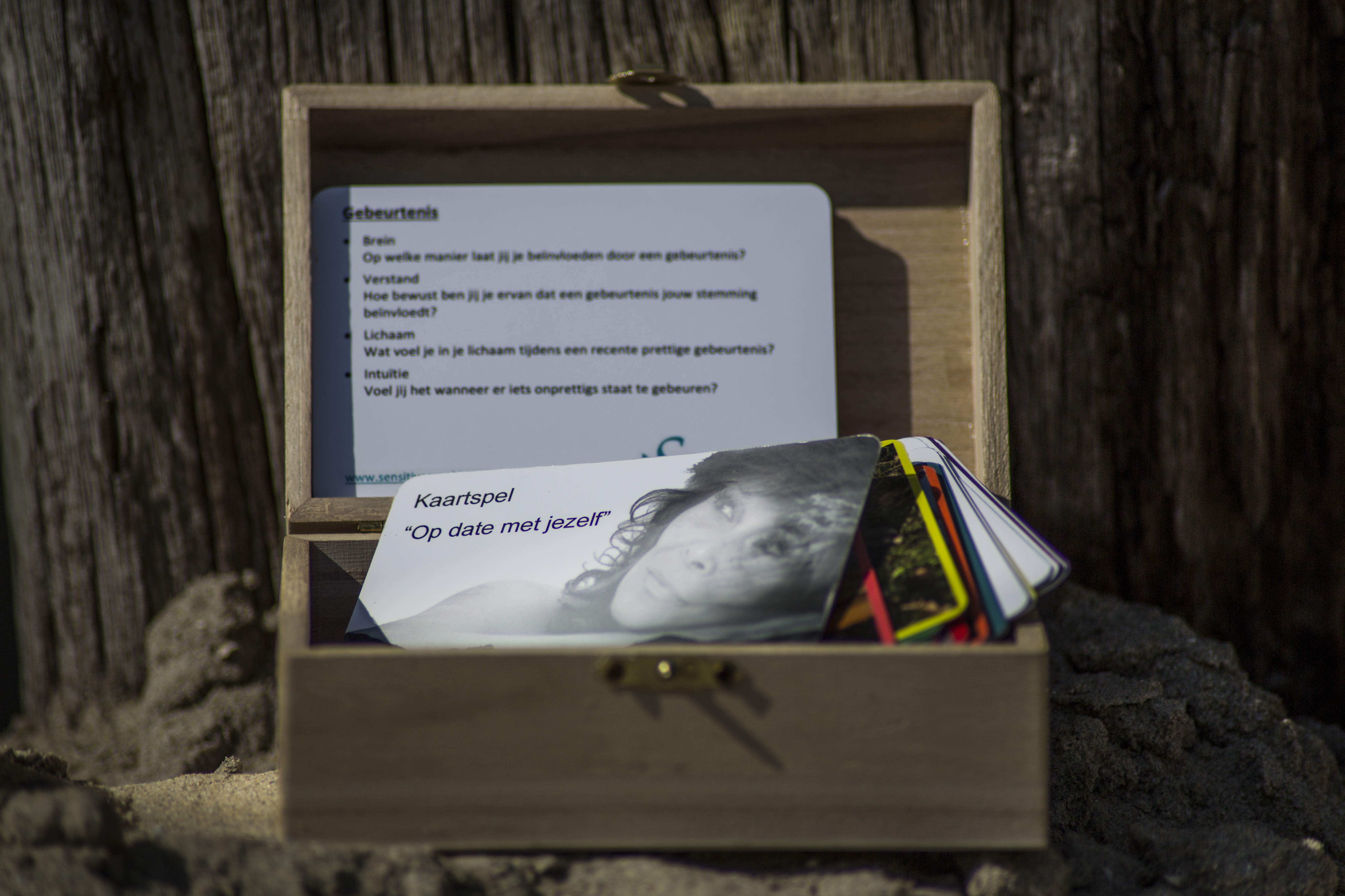 We weten allemaal hoe belangrijk de kracht van herhaling is. Je begint vol enthousiasme aan iets nieuws maar op het moment dat je er niet meer iedere dag mee bezig bent, zakt de kennis die je hebt opgedaan weer weg. Om dat te voorkomen heb ik, speciaal voor deze opleiding, een kaartspel ontwikkeld: ‘Op date met jezelf’.